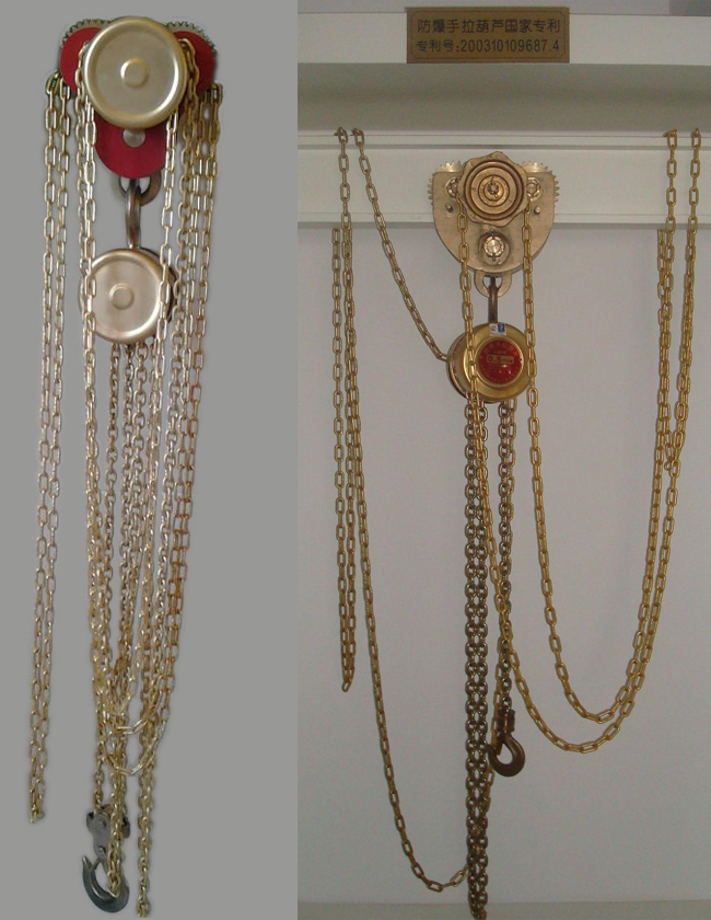 就是將防爆手拉葫蘆與防爆單軌小車結(jié)合在一起使用,從而具有在工字鋼上左右行走的能力。